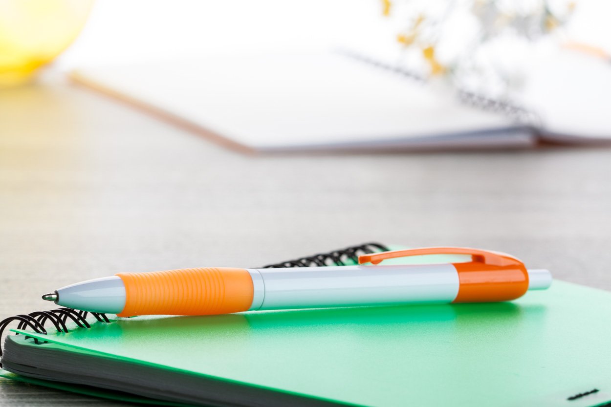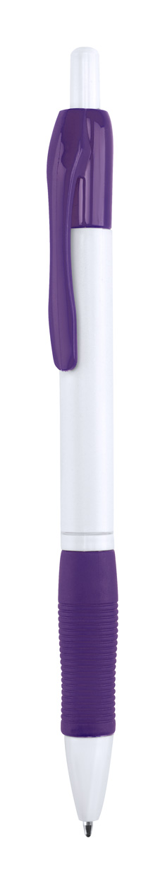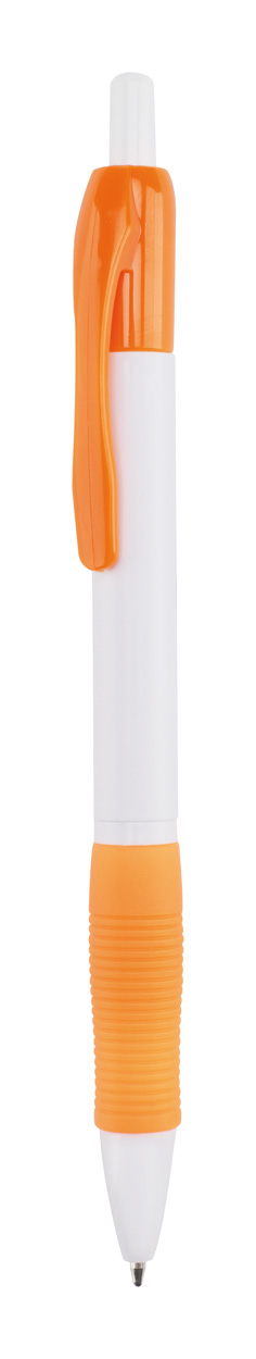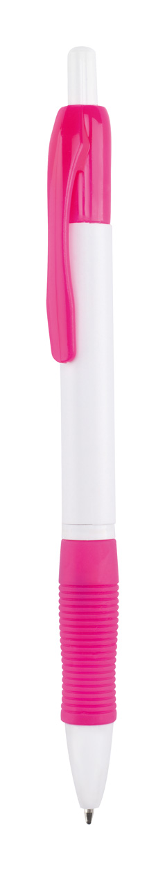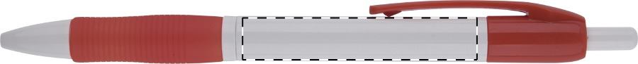 Penna a sfera in plastica con clip e grip colorati. Fornita con refill blu.