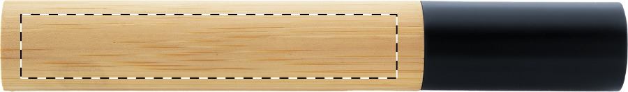 Elegante penna a sfera in metallo nero con fusto in bambù e particolari neri. Confezione in astuccio di bambù a tubo con cappuccio nero. Refill blu.
