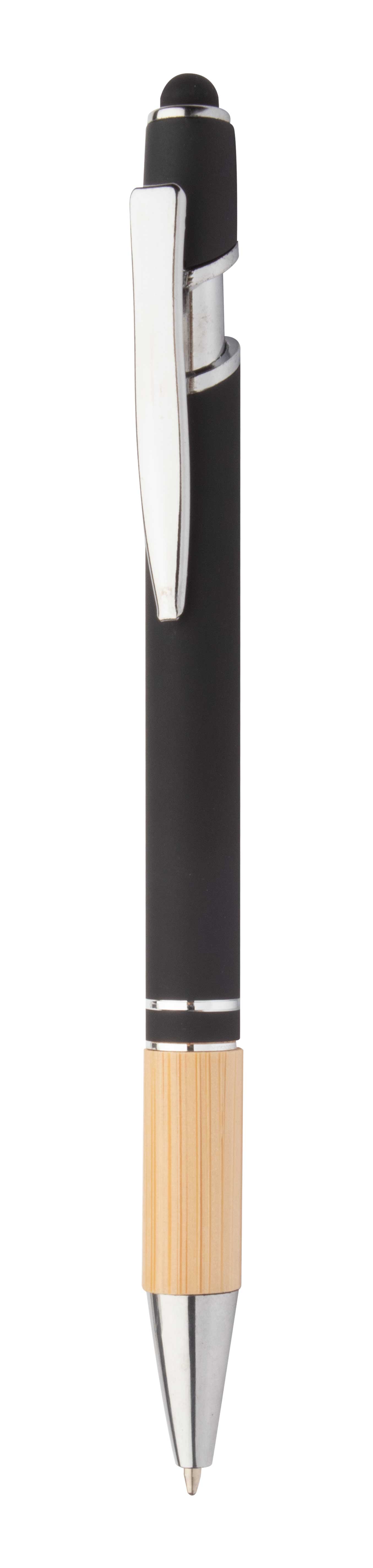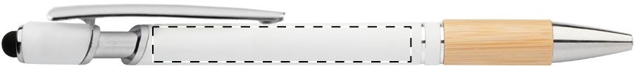 Penna a sfera capacitiva in alluminio con impugnatura in bambù, finitura gommata e rivestimento speciale per l'incisione laser a specchio. Con refill blu.