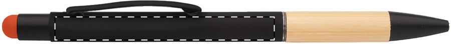 Penna a sfera capacitiva in alluminio con impugnatura in bambù, finitura gommata e rivestimento speciale per l'incisione a specchio abbinato al colore dello stilo. Con refill blu.