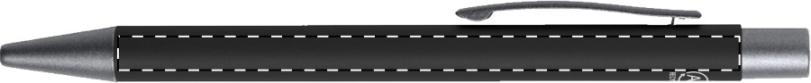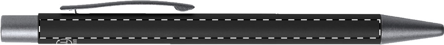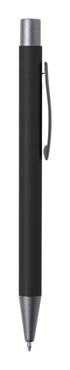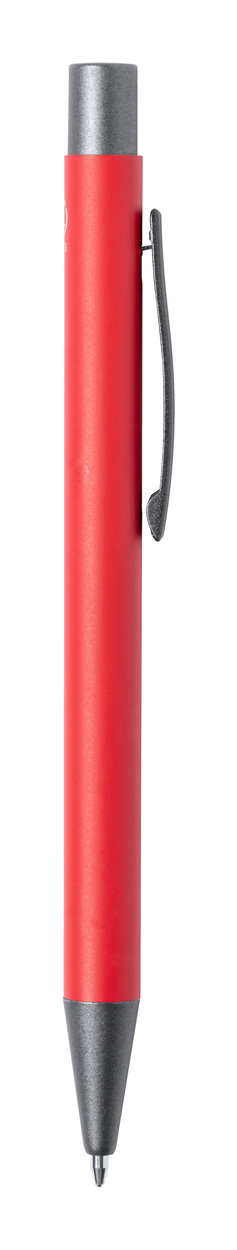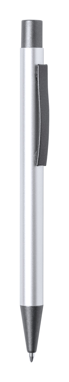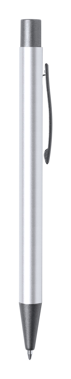 Penna a sfera in alluminio riciclato con finiture color canna di fucile. Con refill blu.