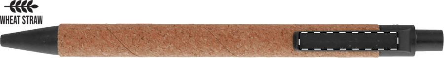 Penna a sfera in plastica ecologica di paglia di grano rivestita in sughero naturale. Con refill blu.