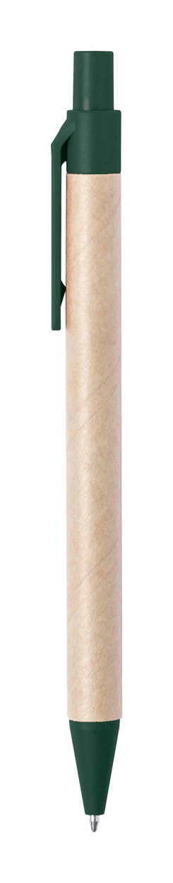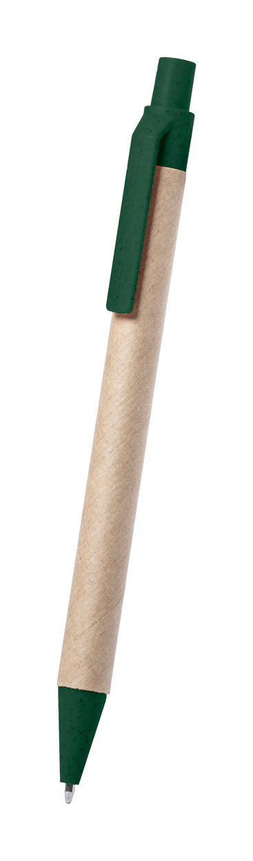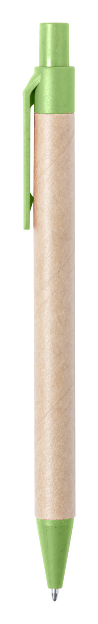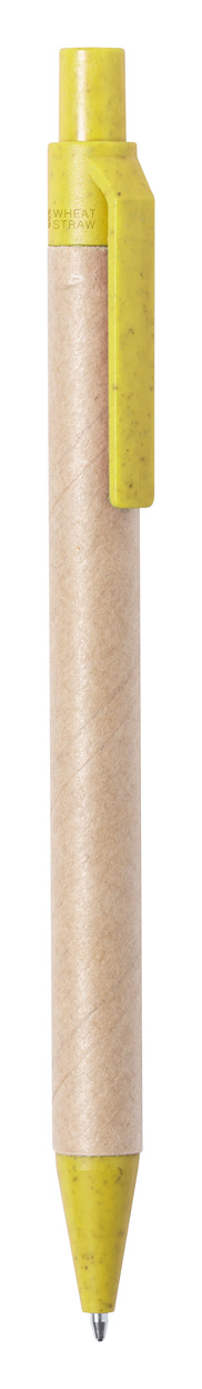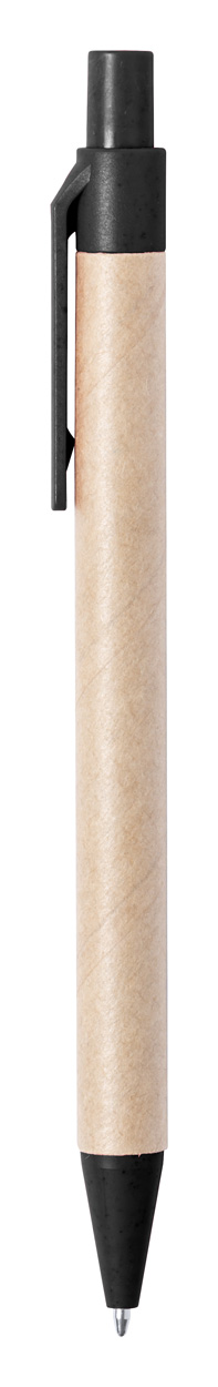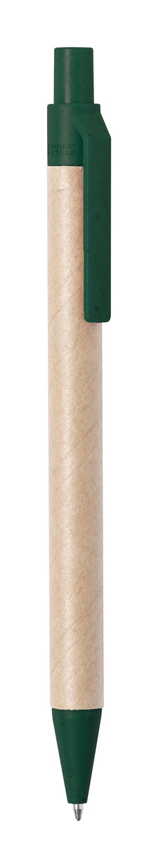 Penna a sfera con corpo in carta riciclata e parti in plastica ecologica di paglia di grano. Con refill blu.