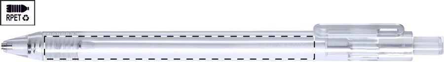 Penna a sfera in plastica RPET trasparente con pulsante colorato. Con refill blu.