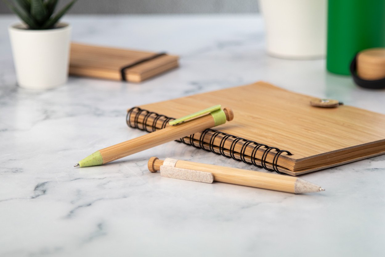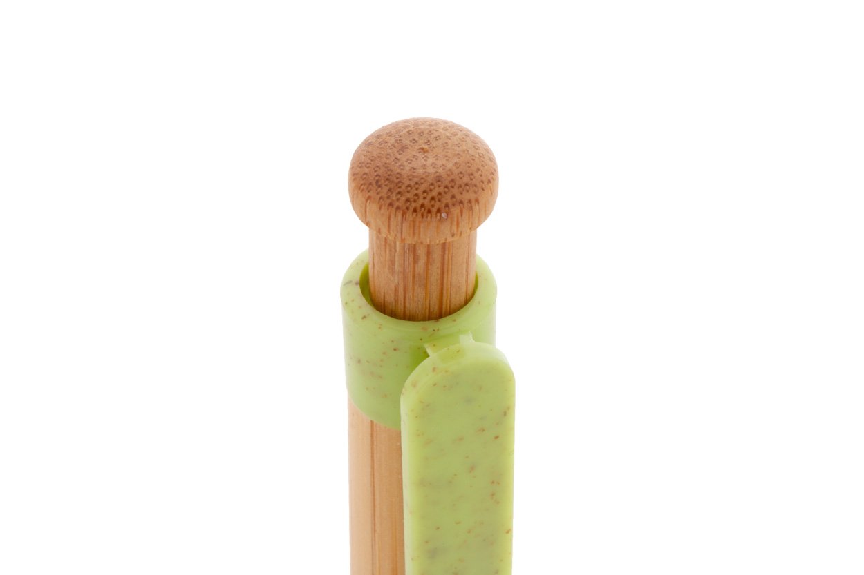 Penna a sfera in bambù con parti in plastica ecologica di paglia di grano. Con refill blu.
