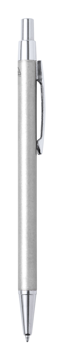 Penna a sfera in alluminio riciclato con inserti cromati. Refill blu.