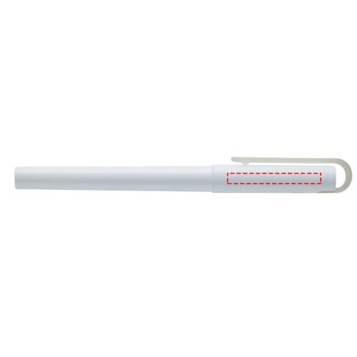 Penna a sfera realizzata in plastica PET riciclata per ridurre l'utilizzo di plastiche vergini. L'inchiostro in una penna gel è una combinazione di componenti a base d'acqua e olio che assicura un flusso regolare e omogeneo paragonabile a quello di una penna stilografica. Questo tipo di inchiostro è noto anche per la sua resistenza allo scolorimento che lo rende una scelta popolare per artisti e scrittori. Le penne gel in genere presentano una punta fine a sfera che consente di scrivere in modo preciso e controllato.