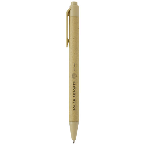 Penna a sfera leggera per gli appunti quotidiani. Il fusto è realizzato in carta crush di provenienza responsabile. I diversi colori della carta contengono residui di caffè (marrone), di olive (verde) e di mais (bianca). Il fondello, la clip e la punta sono realizzati in plastica PLA. Inchiostro nero. Capacità di scrittura: 700 metri.