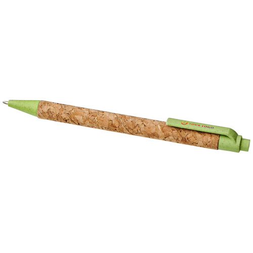 Penna a sfera ecologica con meccanismo a scatto, con serbatoio in sughero e finiture in paglia di grano, disponibile in una varietà di colori. La paglia di grano è il gambo rimasto dopo la raccolta dei chicchi di grano. Con questo materiale è possibile ridurre la quantità di plastica utilizzata, fornendo un'alternativa ecologica. Il colore del sughero può variare.