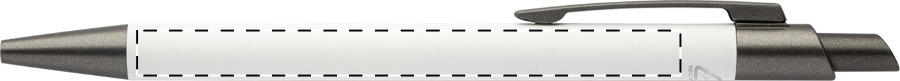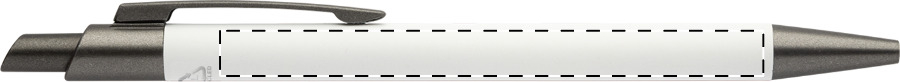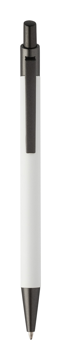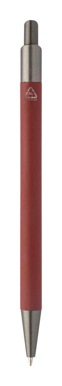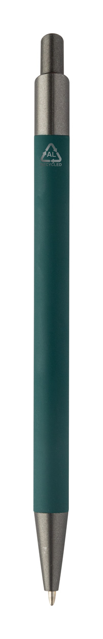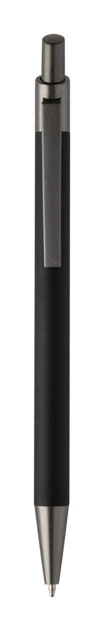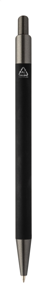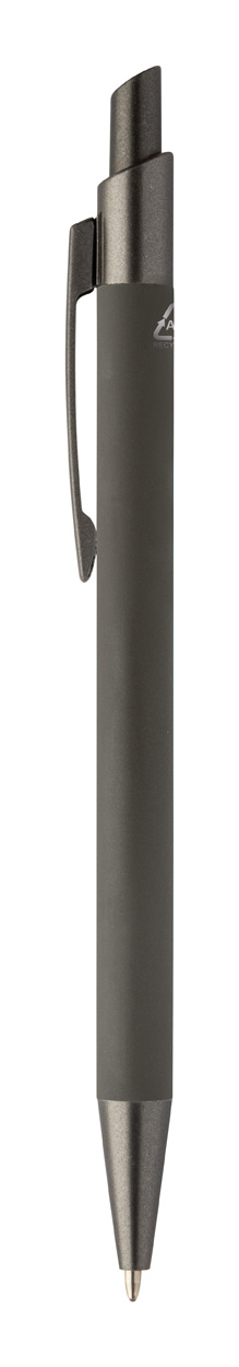 Penna a sfera in alluminio riciclato con fusto gommato e componenti in color canna di fucile. Fornita con refill blu.