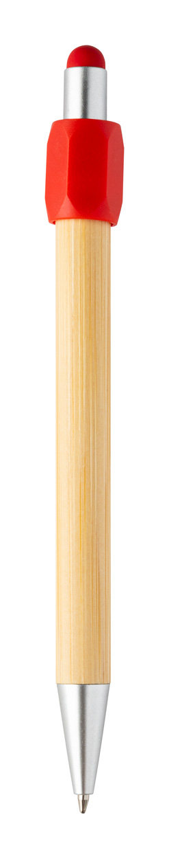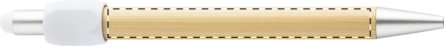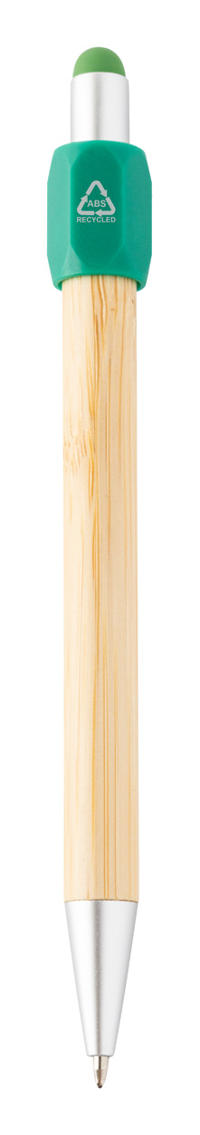 Penna a sfera capacitiva in bambù con fidget spinner in plastica ABS riciclata e refill blu.