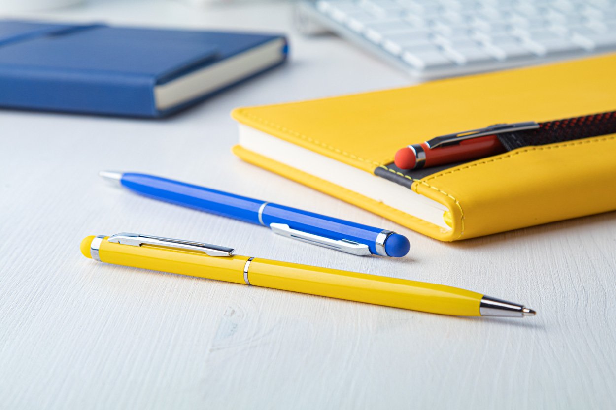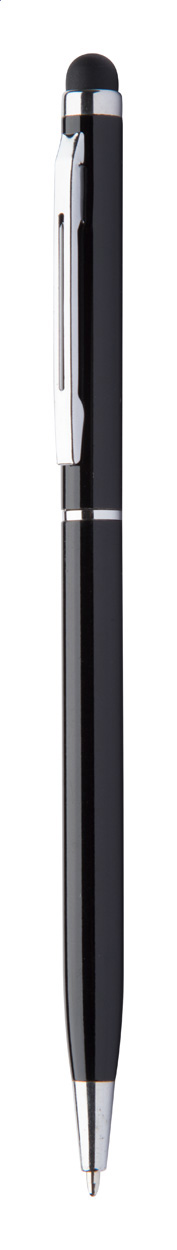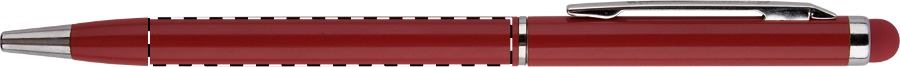 Penna a sfera in alluminio colorato con gommino capacitivo in colore coordinato e refill blu.
