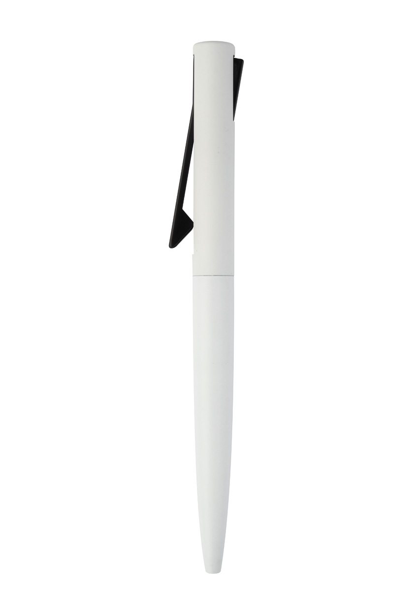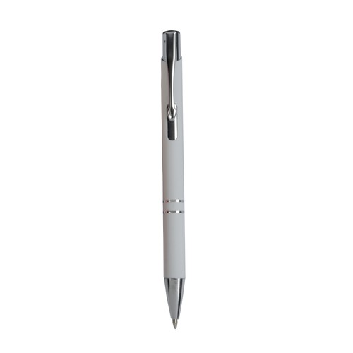 Penna a scatto, in alluminio gommato, con decorazione a due anelli e particolari cromati. Refill nero.