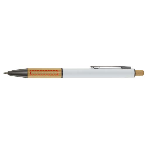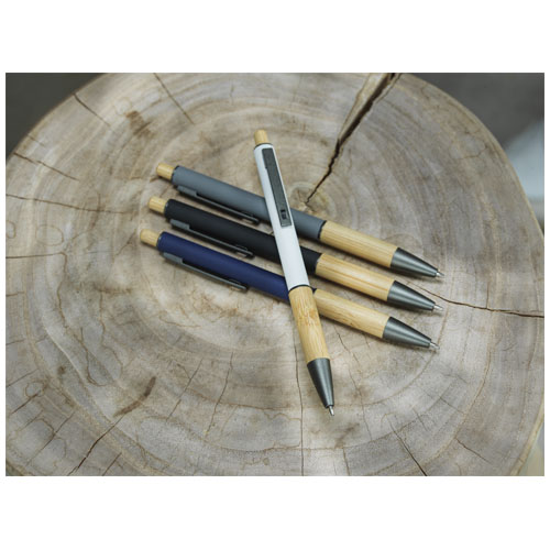 La penna a sfera Darius è realizzata in alluminio riciclato, che richiede meno energia nella produzione rispetto all'alluminio proveniente da materie prime. Riduce inoltre la quantità di rifiuti nelle discariche e aiuta a conservare le risorse naturali con l'obiettivo di ridurre le emissioni di gas serra. Il pulsante e la parte inferiore del fusto sono in bambù. Colore dell'inchiostro: Nero. Capacità di scrittura: 800 metri. Dimensione del pennino: 1,00 mm.