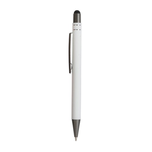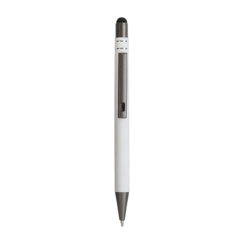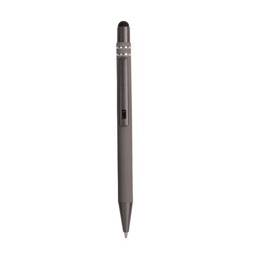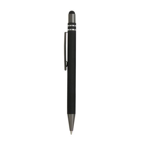Penna a scatto, in alluminio gommato, con decorazione a due anelli e particolri bruniti con touch screen. Refill nero.