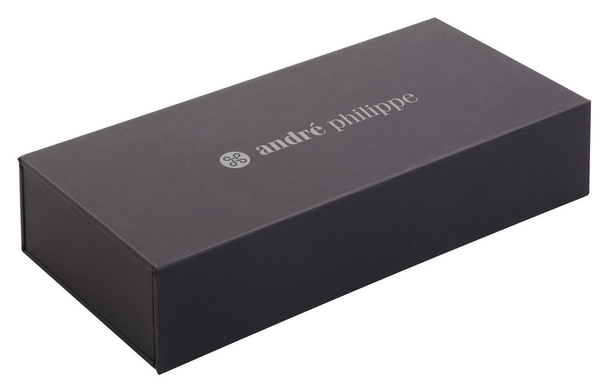 Set composto da una penna a sfera ed una penna roller in metallo con fusto in legno di palissandro. Fornito in scatola regalo e refill blu. Prodotto a marchio André Philippe.