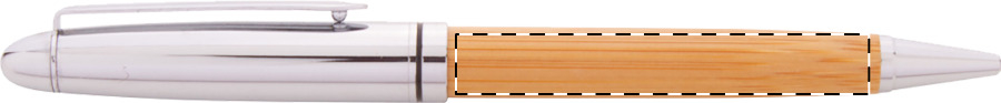 Elegante set di penne in bambù e metallo composta da una penna a sfera ed una penna roller in confezione regalo in bambù. Con refill blu.