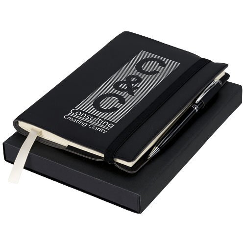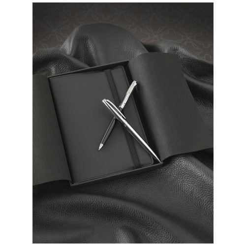 Taccuino dal design esclusivo con copertina flessibile (80 fogli da 80 g/m² di carta a righe di color crema) con porta penna integrato e porta biglietto da visita allinterno della copertina posteriore. È incluso un libretto supplementare per prendere note separate. Penna a sfera inclusa, tutto in confezione regalo "LUXE".