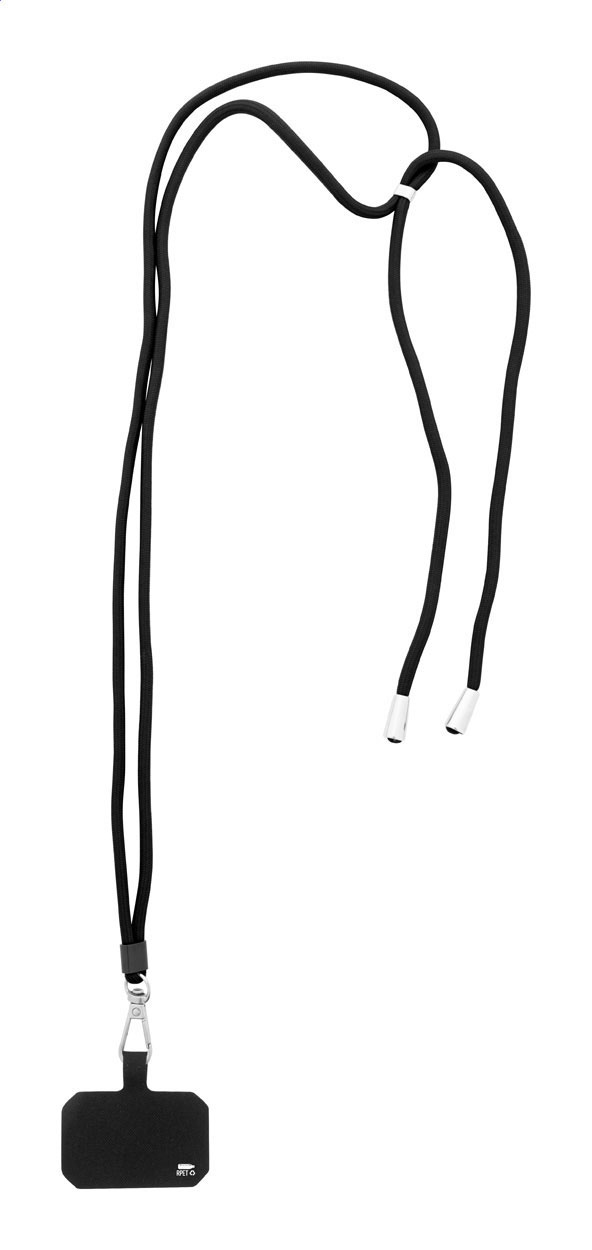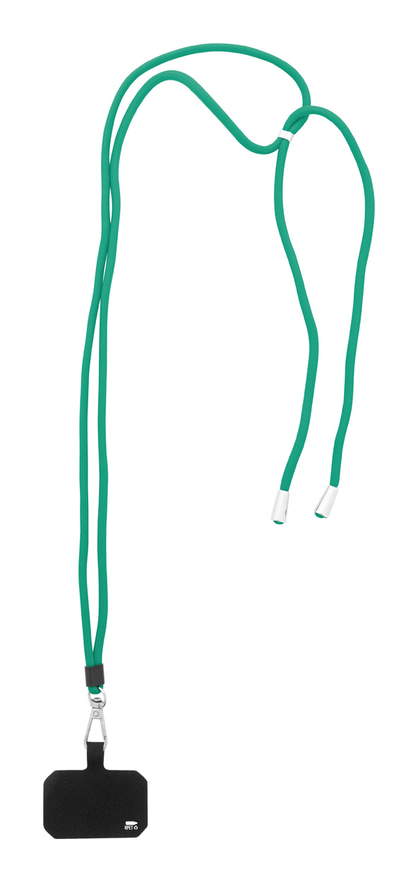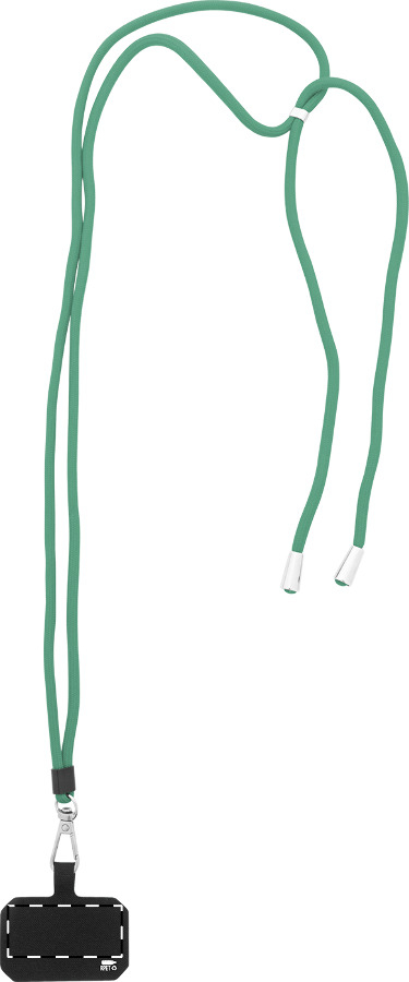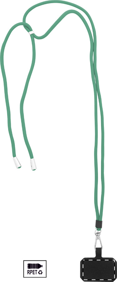 Lanyard in RPET portacellulare regolabile in lunghezza, con moschettone in metallo e inserto portacellulare. Superficie del portacellulare personalizzabile. Articolo eco-friendly, ecologico e sostenibile.