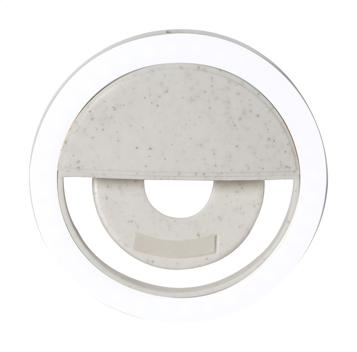 Luce anulare da selfie per telefoni cellulari, in plastica ecologica di paglia di grano con batteria ricaricabile integrata, 36 LED e 3 livelli di luminosità regolabili. Cavo di ricarica USB incluso. Articolo eco-friendly, ecologico e sostenibile.