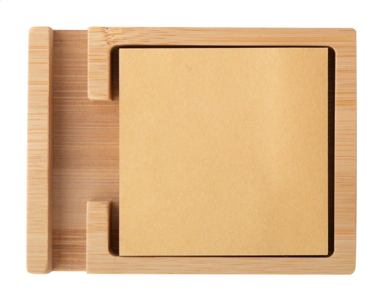 Portacellulare in bambù con blocco note in carta kraft riciclata da 125 fogli (75x75 mm). Articolo eco-friendly, ecologico e sostenibile.