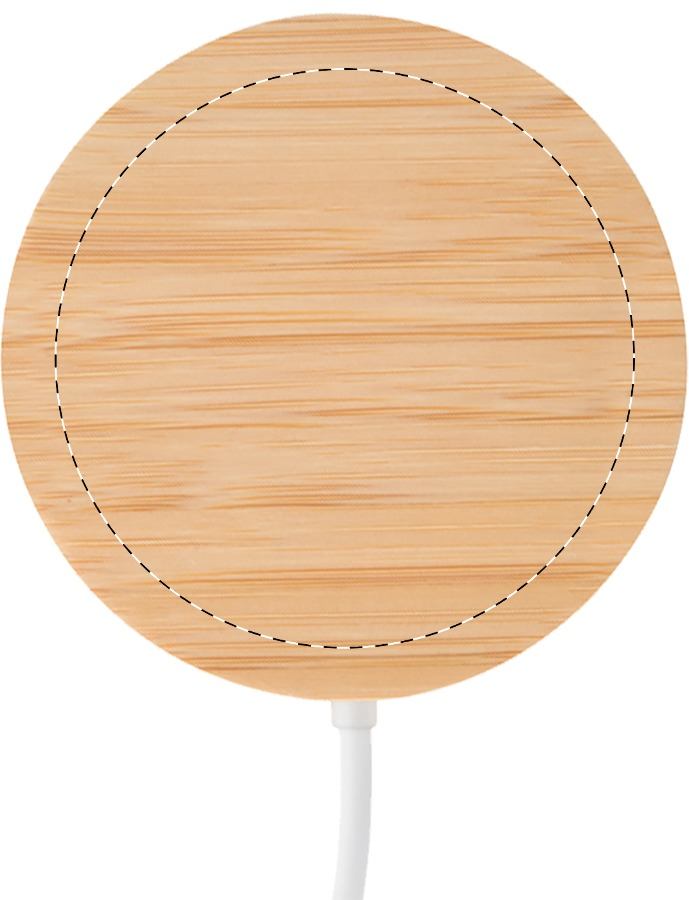 Caricatore magnetico wireless veloce (15W) con struttura semitrasparente rivestita in bambù e componenti elettronici visibili. Completo di anello metallico autoadesivo per ricarica in modalità wireless. Compatibile con iPhone® 12 o più recenti. Cavo di ricarica USB-C incluso. Sueprfice personalizzabile a colori o incisione.