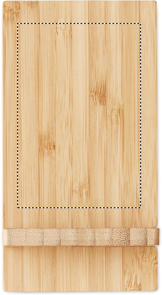 Supporto per telefono, in bambù, con caricabatterie wireless a doppia bobina. Posizionare sopra lo smartphone per iniziare la carica. Composto da 2 parti da montare. Uscita: DC 9V/1.1A (10W). Personalizzabile a colori. Consegna express inclusa fino a 100 pz