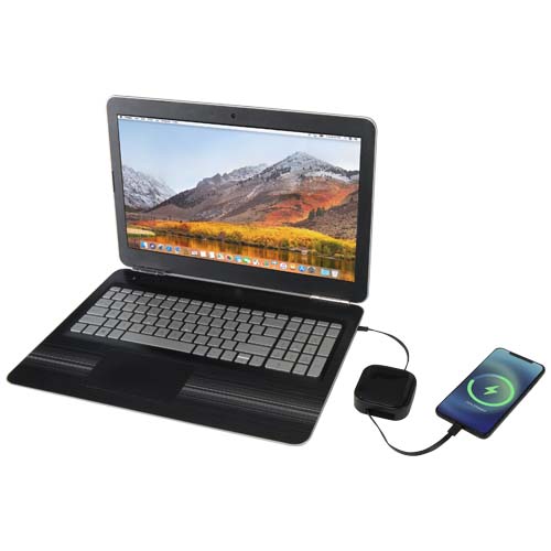 Cavo di ricarica per smartphone multifunzione, in plastica riciclata. USB-C retrattile da 100 W per la ricarica rapida e il trasferimento dei dati, adattatore USB-A e micro-USB/Lightning 2 in 1. Compatibile sia con CarPlay e Android Auto. Include strumento per l'estrazione della scheda SIM, due slot per una nano SIM e una scheda microSD e un supporto per telefono integrato. Articolo ecologico e sostenibile.
