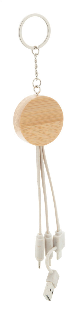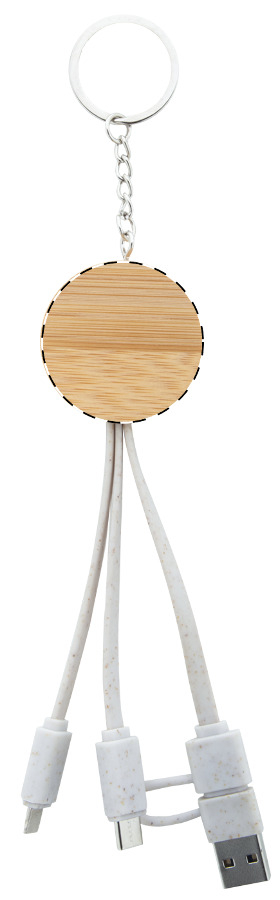 Portachiavi con cavo di alimentazione USB in plastica ecologica di paglia di grano e bambù. Connettori micro USB, USB-C, Lightning ed ingressi USB e USB-C. Personalizzabile. Articolo eco-friendly, ecologico e sostenibile.