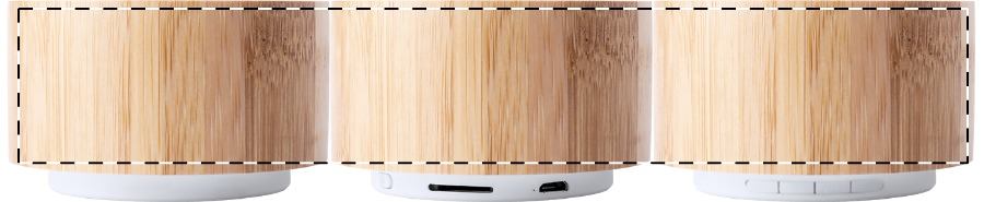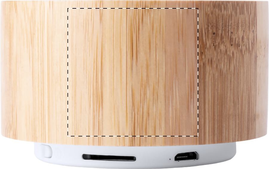 Altoparlante wireless in un involucro di bambù con funzione di chiamata in vivavoce, radio FM e batteria ricaricabile integrata. Include un cavo di ricarica USB. Personalizzabile.