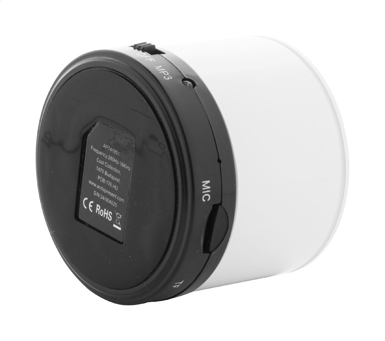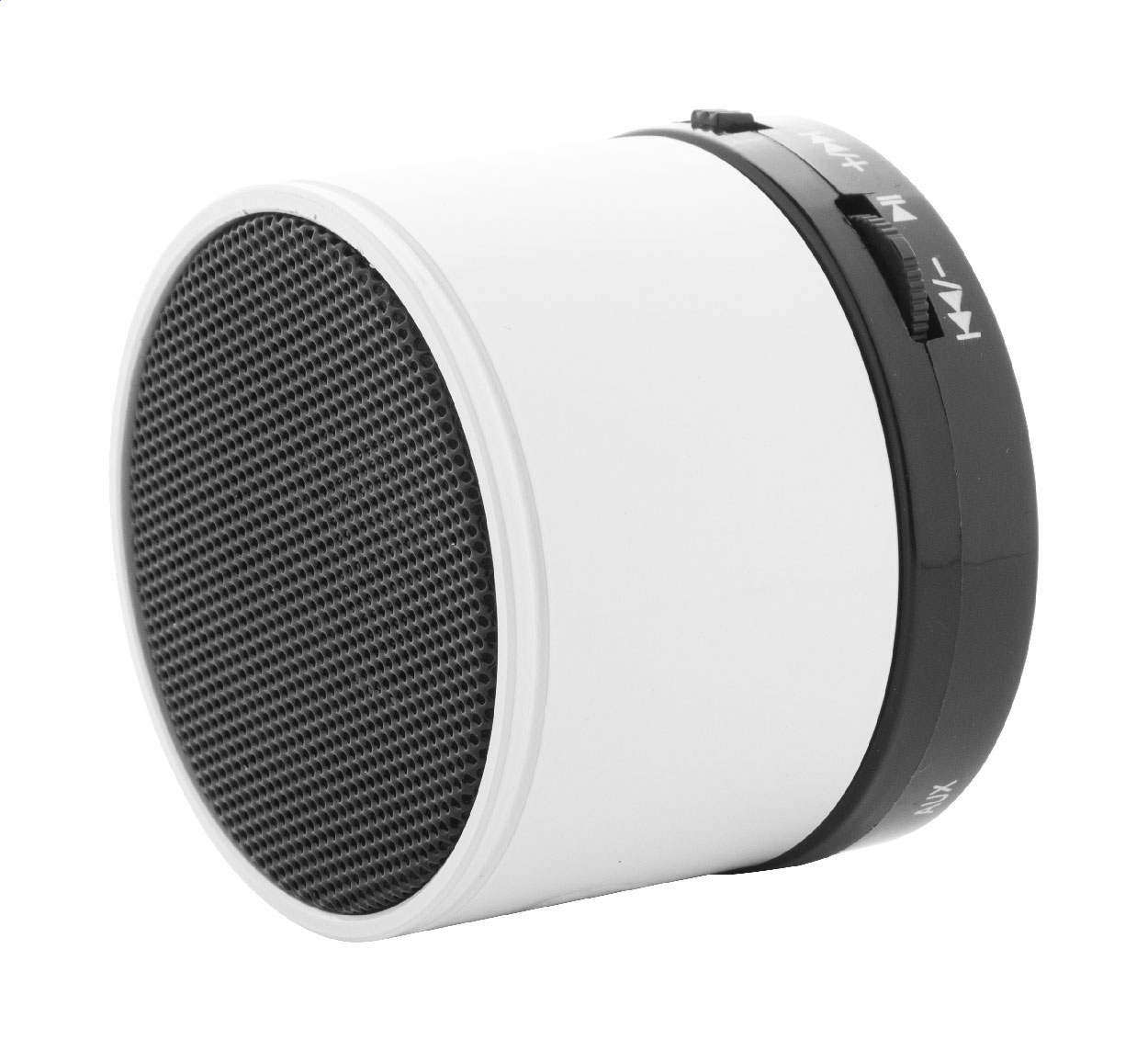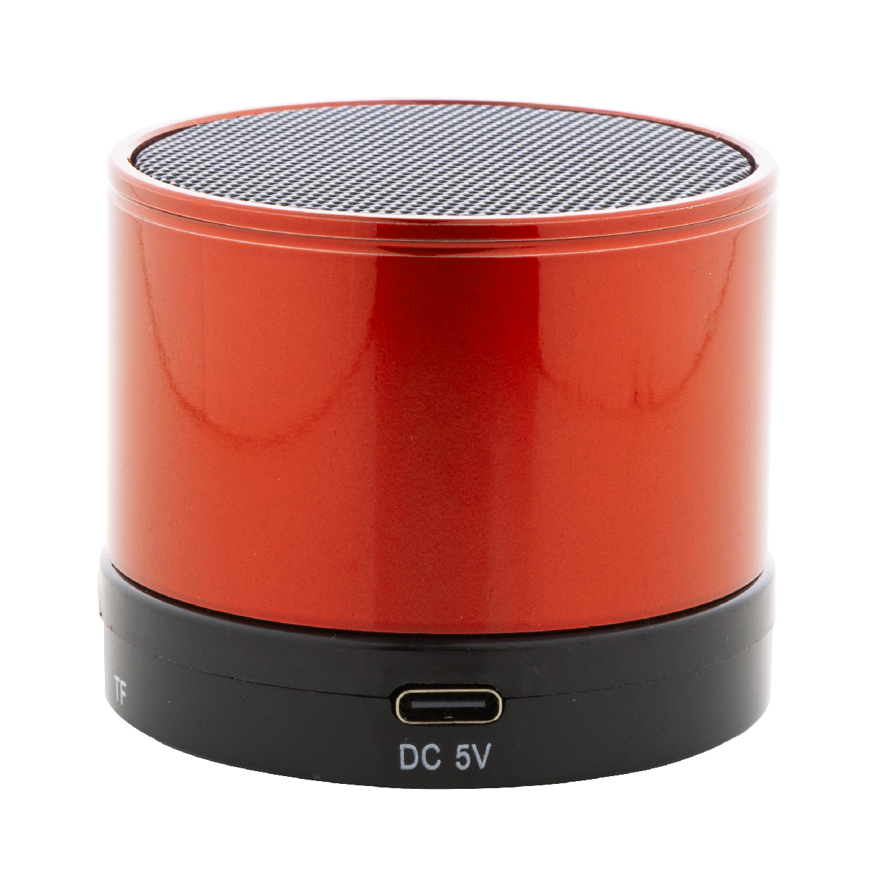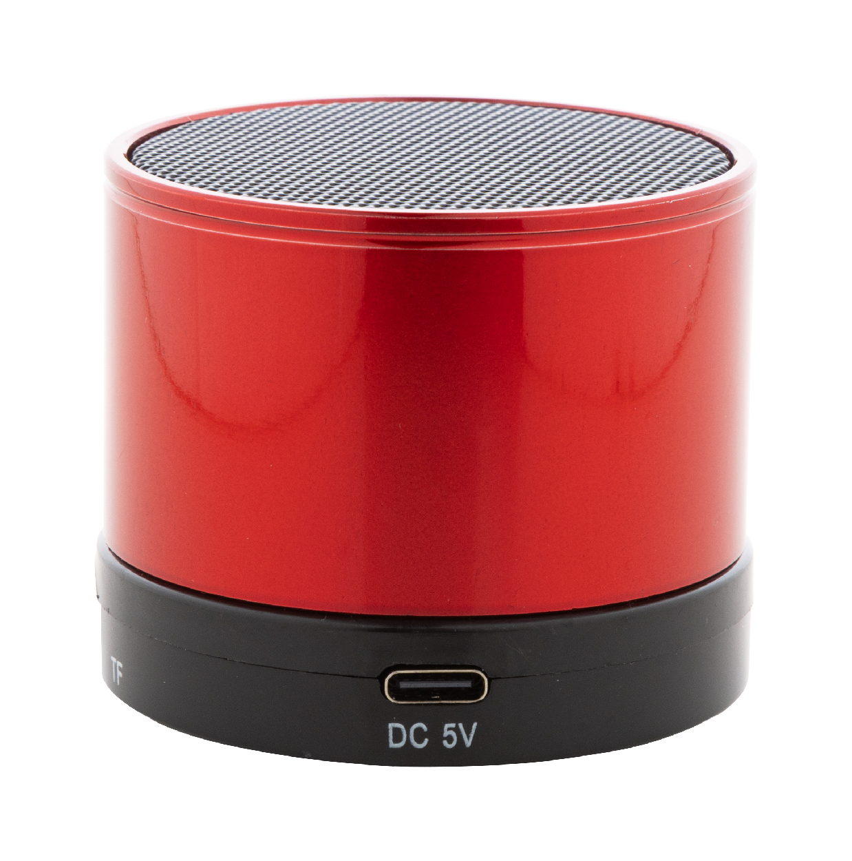 Altoparlante wireless con alloggiamento in metallo. Con radio, lettore MP3, funzione di chiamata in vivavoce e batteria ricaricabile integrata. Include caricatore USB e cavo aux-in. Personalizzabile.
