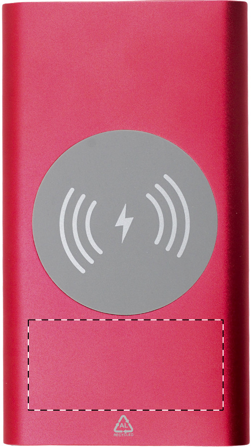 Power bank USB in alluminio riciclato con caricatore rapido wireless integrato (15W), batteria da 4000 mAh, porta di ingresso USB-C e 1 porta di ricarica USB e 1 USB-C. Cavo di ricarica USB incluso. Personalizzabile a colori o ad incisione.