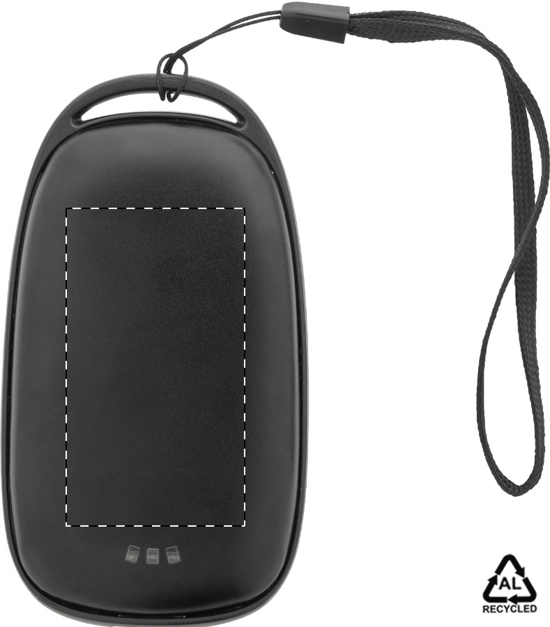 Scaldamani elettrico in alluminio riciclato con 3 livelli di intensità con power bank integrata da 4000 mAh. Con porte di ricarica USB e USB-C e porta di ingresso USB-C. Cavo di ricarica USB incluso. Personalizzabile a colori, con incisione, oppure con stampa nomitativa.