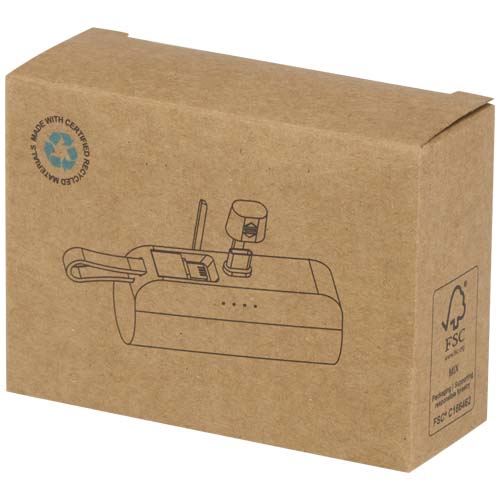 Power bank Tipo-C da 5.000 mAh e 10 W in plastica riciclata con supporto ribaltabile integrato e cavo 2 in 1 Alnair