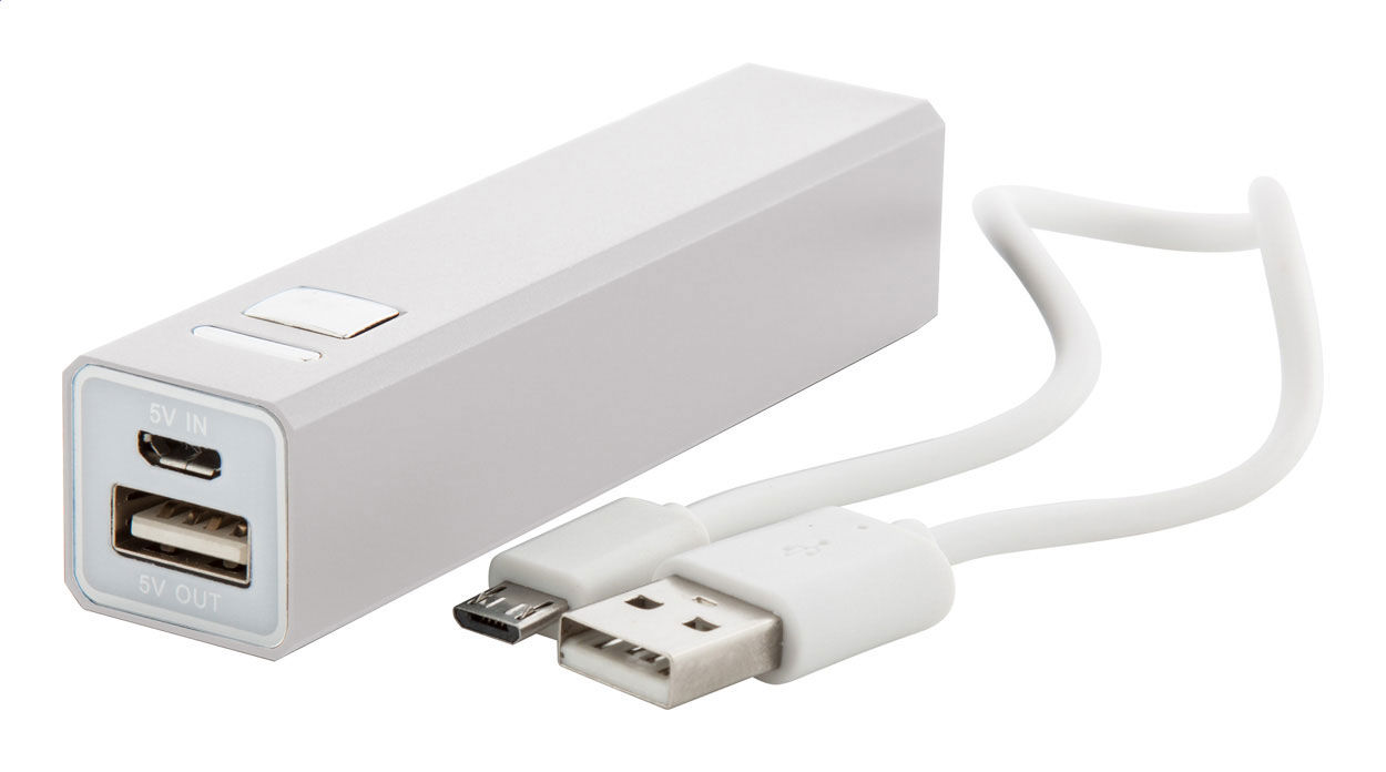 USB power bank in alluminio da 2200 mAh. Cavo di ricarica micro USB compreso. Personalizzabile a colori, con incisione o con stampa nominativa.
