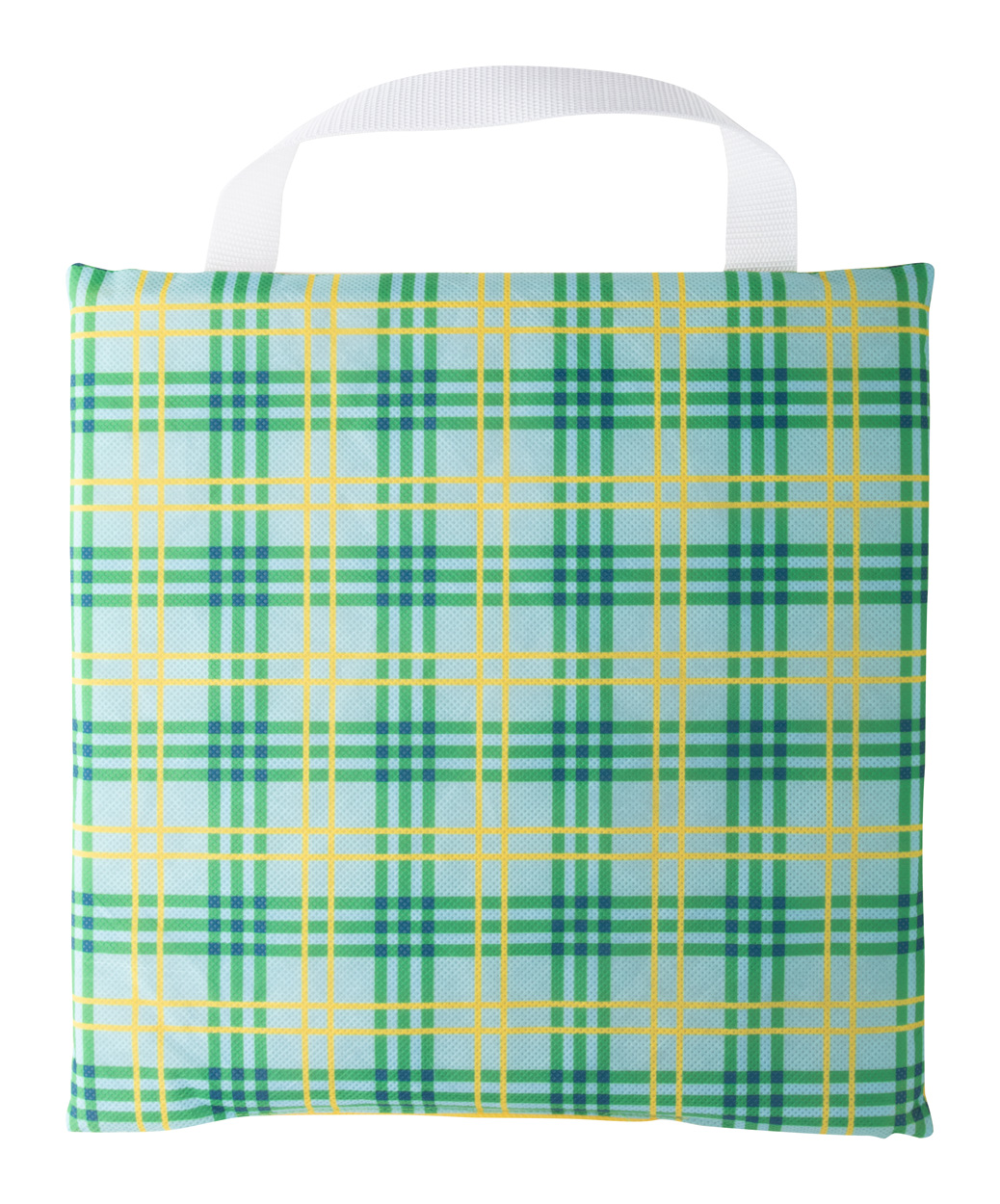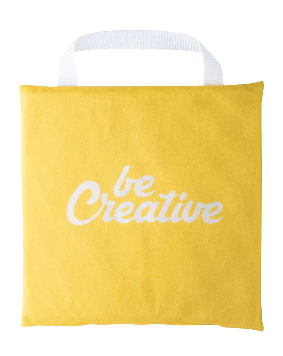 Cuscino da stadio in tessuto non tessuto personalizzabile con maniglia. Con grafica stampata in sublimazione su tutta la superficie. MOQ: 50 pezzi.