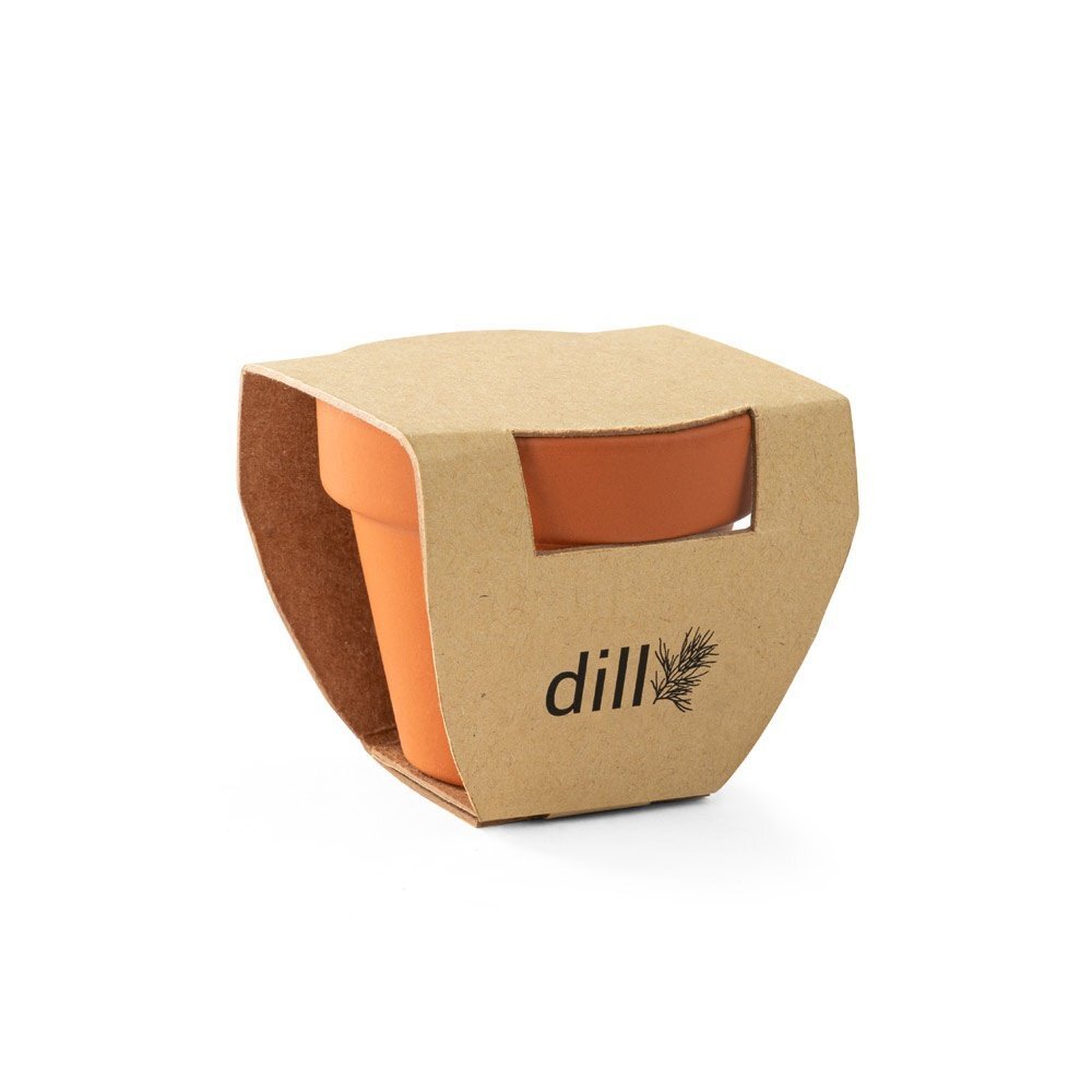 Vaso in terracotta con semi di aneto e e disco di terra disidratata. Fornito in confezione di carta kraft e smontata
