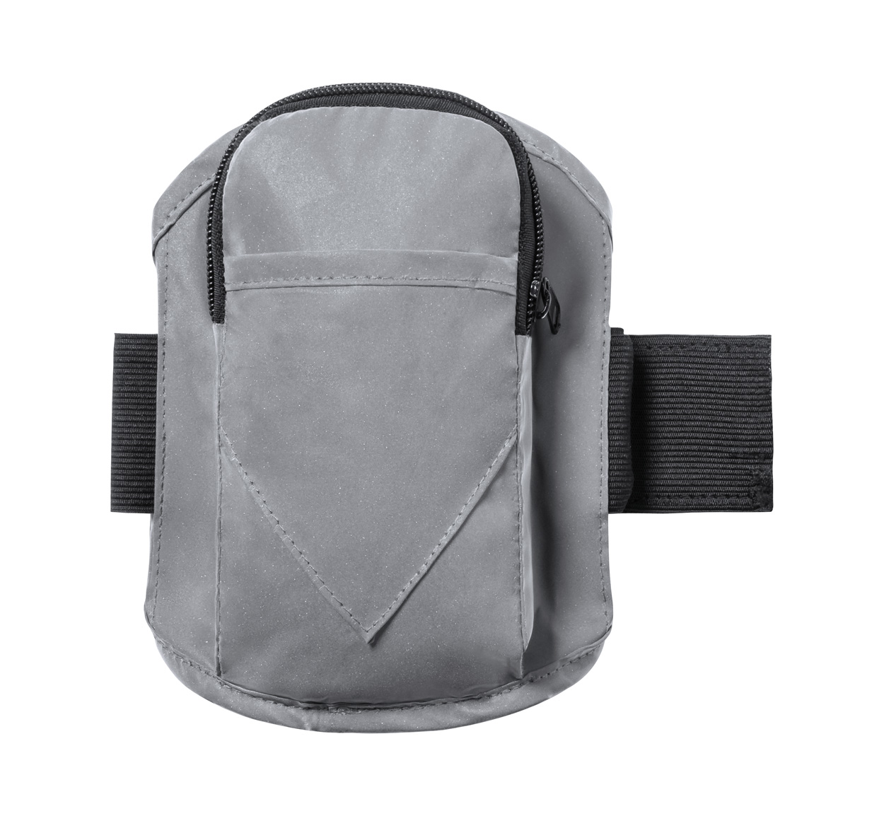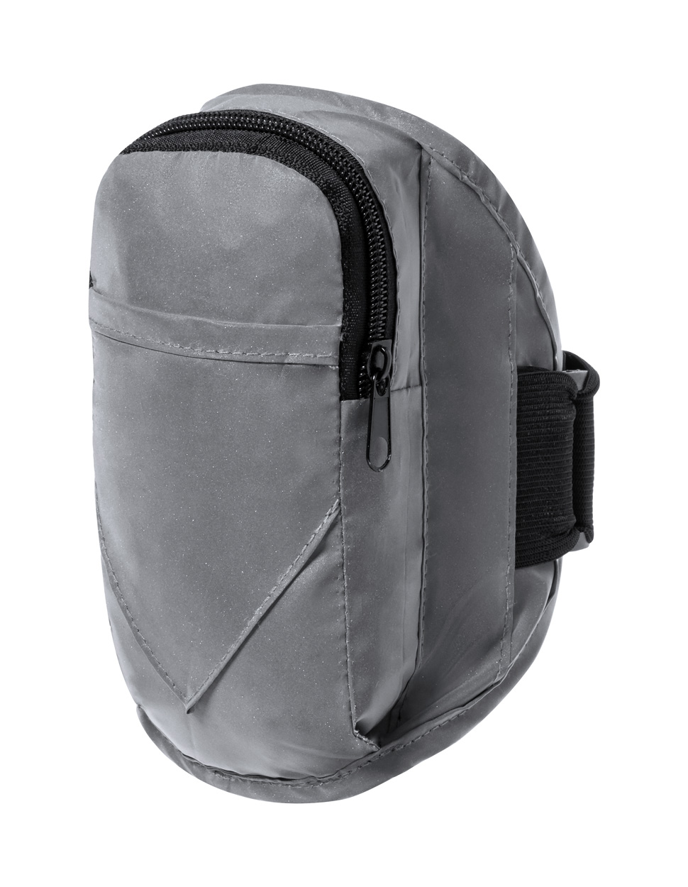 Fascia riflettente da braccio con scomparto e cerniera. Può essere utilizzato per trasportare un telefono cellulare, chiavi, contanti o carte di credito. Poliestere 210T.