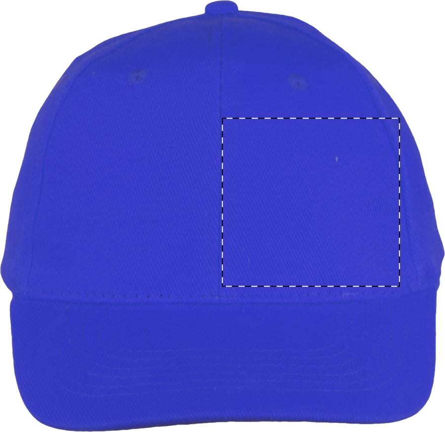 Berretto da baseball con 6 pannelli e chiusura con velcro, 100% cotone spazzolato.