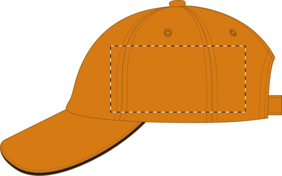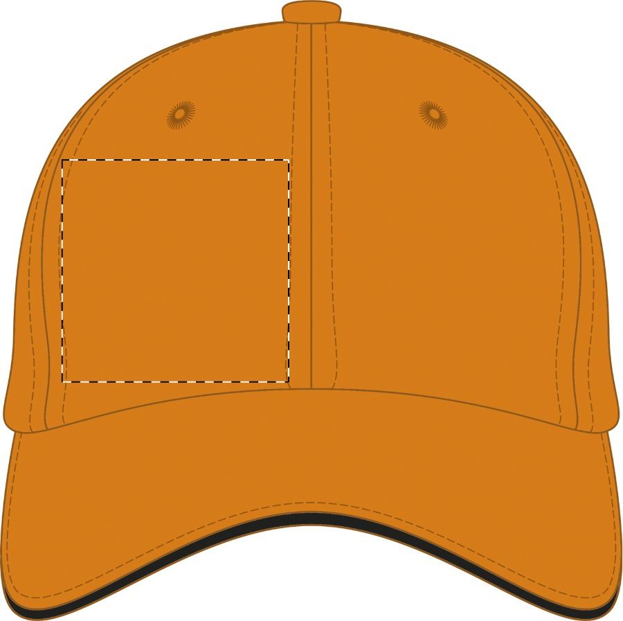 Berretto da baseball 6 pannelli, 100% cotone spazzolato, chiusura con velcro.