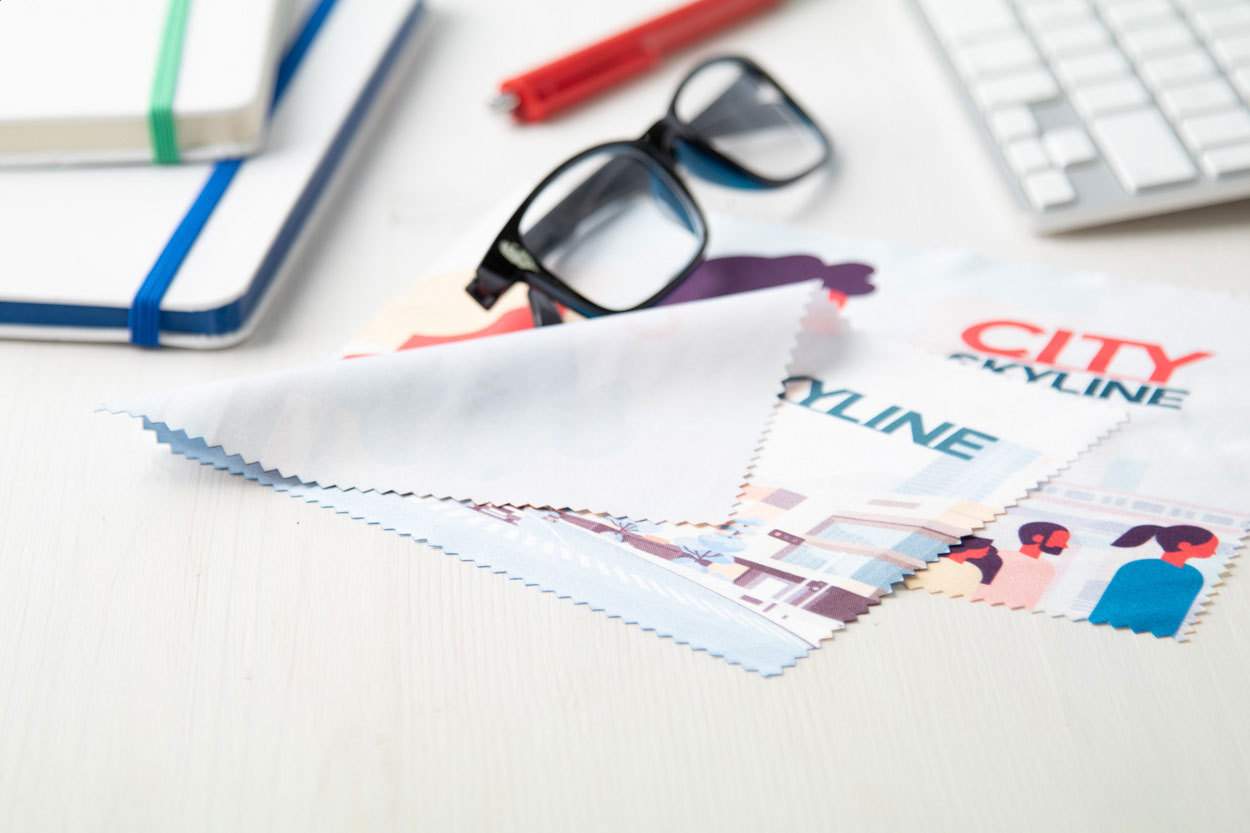 Panno in microfibra (180 g/m²) per la pulizia di occhiali e schermi. Ideale per la stampa in sublimazione.