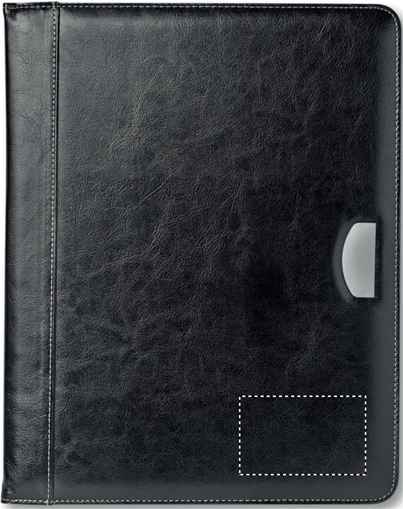 Portadocumenti A4 con placca in metallo e blocnotes da 20 fogli incluso. In PU.