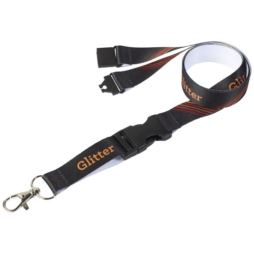 Lanyard in poliestere rasato liscio, con personalizzazione full color in sublimazione su due lati. Dotato di moschettone in metallo.