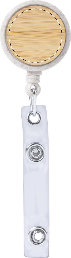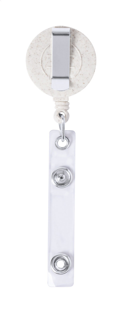 Porta pass in ecologica plastica di paglia di grano e bambù con chiusura a pressione, filo telescopico e clip in metallo.