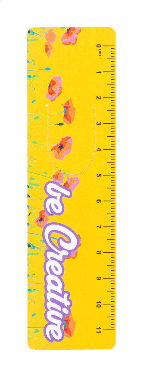 Segnalibro in cartoncino con righello da 11 cm, personalizzabile con grafica a colori sul lato anteriore. MOQ: 100 pezzi.