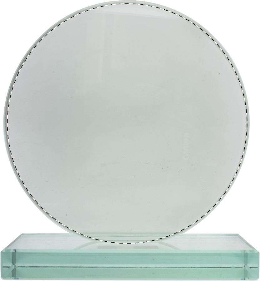 Targa in vetro di forma rotonda, in scatola regalo nera.