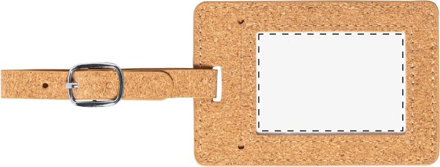 Etichetta per bagagli in sughero naturale con fibbia in metallo.