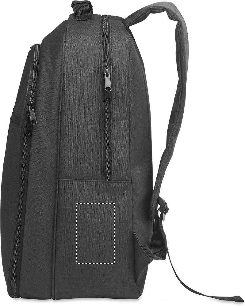 Zaino refrigerante in 300D RPET con scomparto per laptop da 15 pollici. Tasca frontale con cerniera e scomparto laterale in rete.